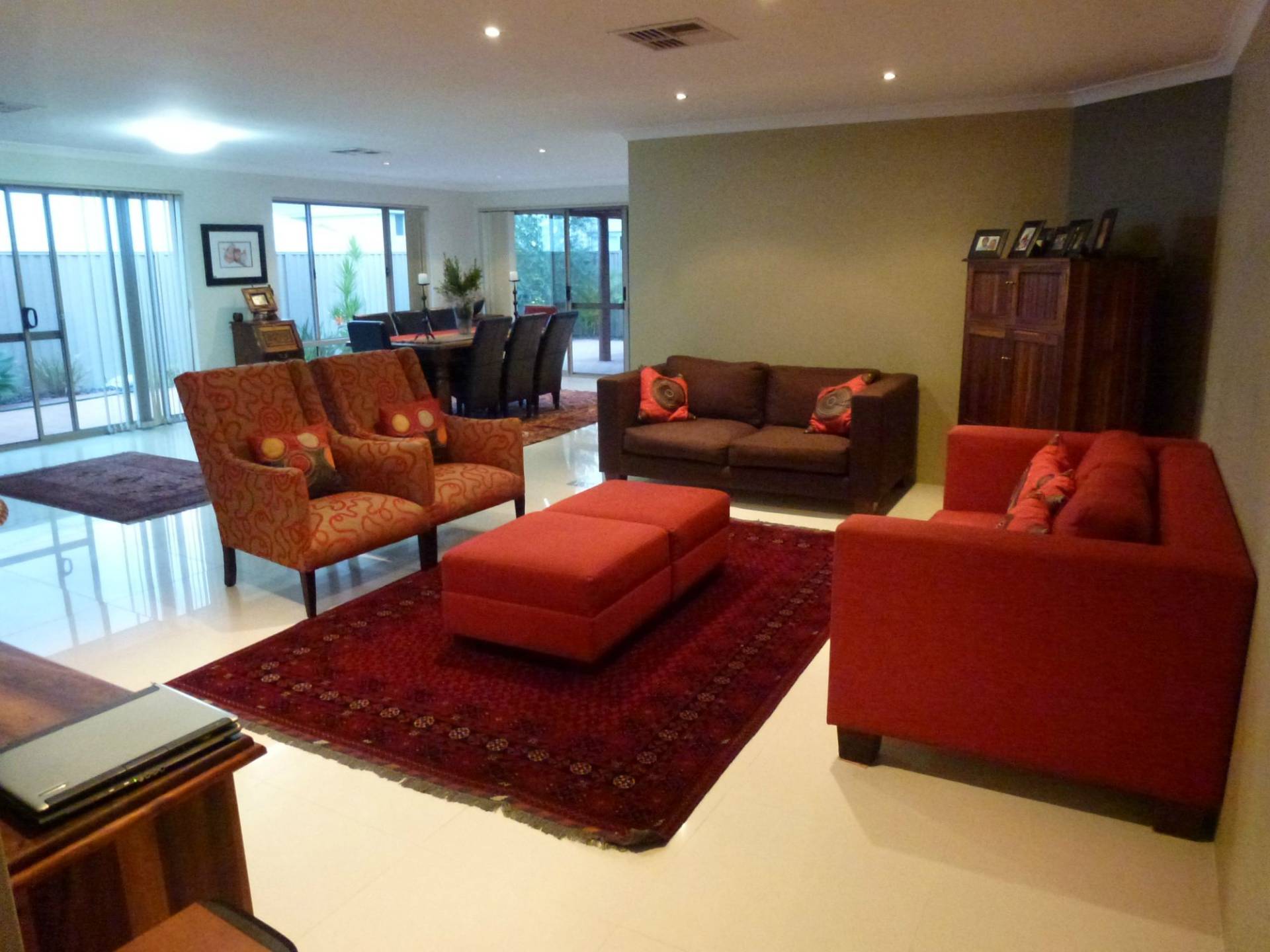 •north facing open plan dining, family and games room with quality porcelain tiles;