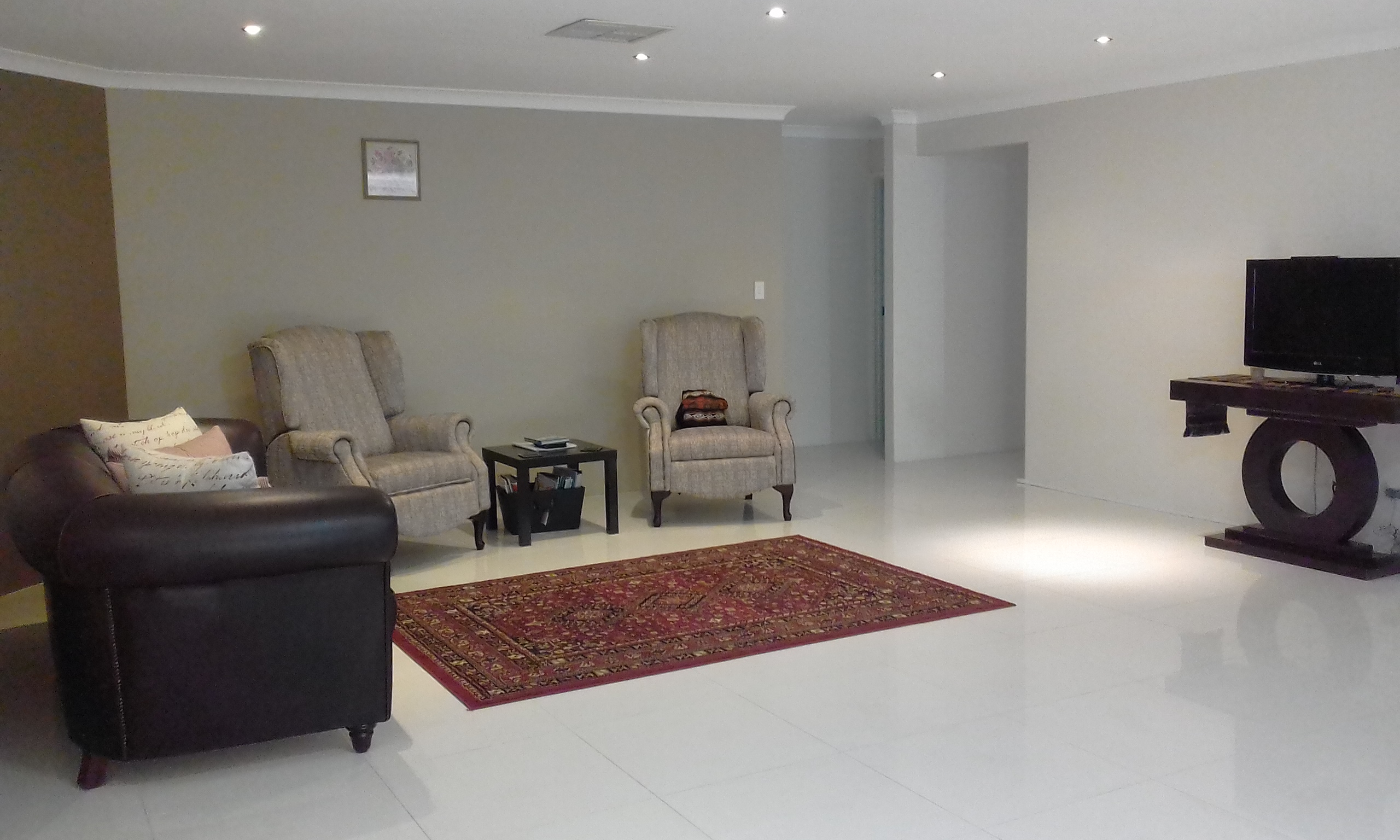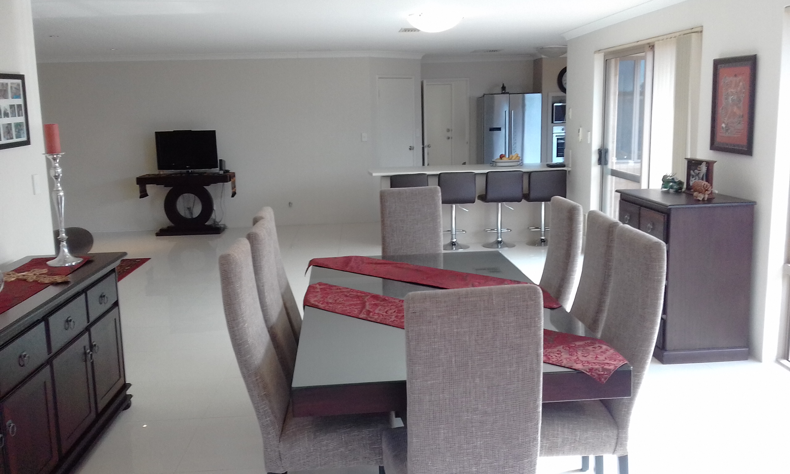 •north facing open plan dining, family and games room with quality porcelain tiles;