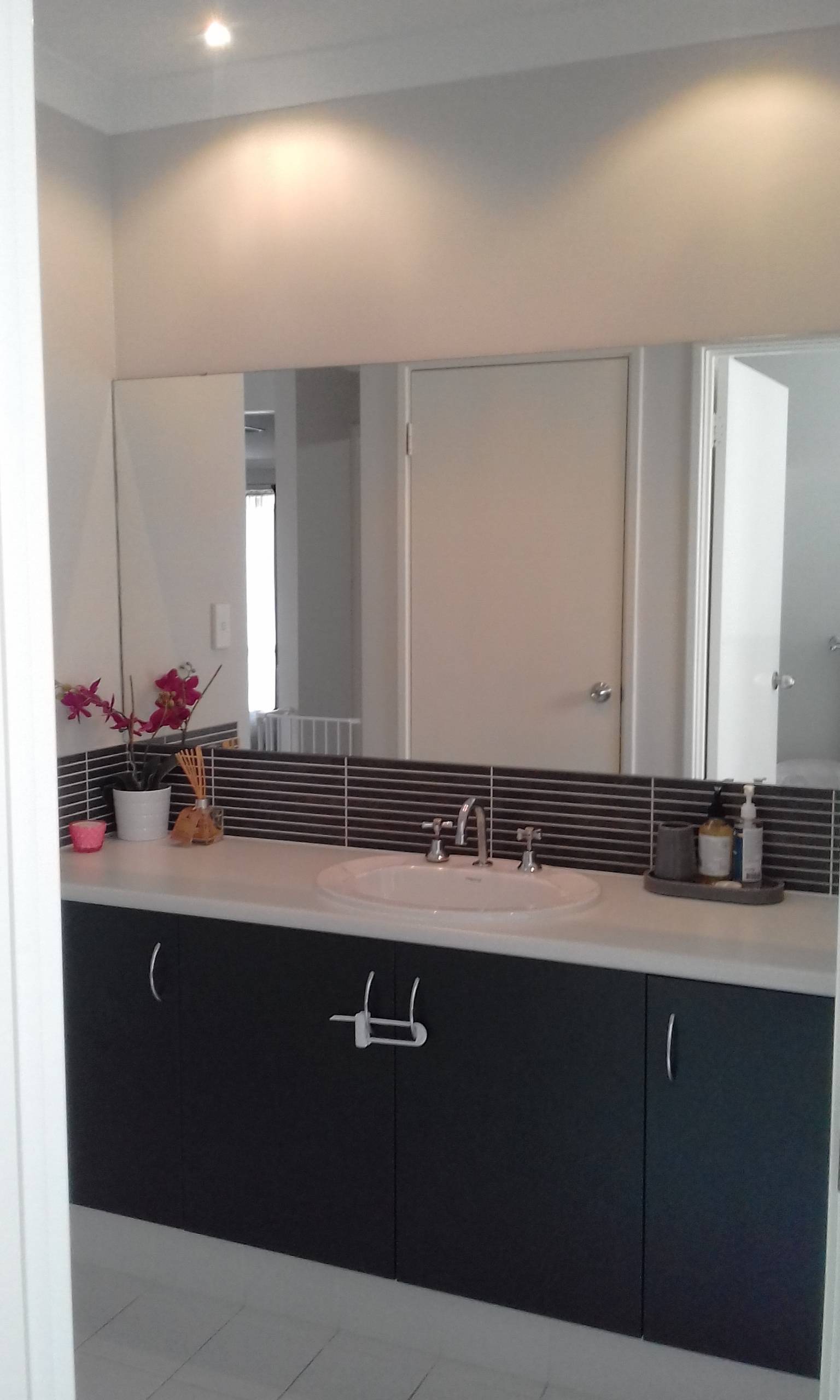 • ensuite consists of a large shower, toilet and large vanity with star lights and heat lamps above;